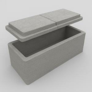 Chaque caveau est généré à partir d’un fichier numérique. Les dimensions (longueur, largeur, hauteur, nombre de cases, épaisseurs) peuvent être ajustées sans créer de nouveaux moules.