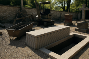 La fabrication classique des caveaux repose sur des procédés éprouvés, mais contraignants :